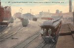 A Postcard view fromt he rear of Birmingham Union Station showing the train shed and division office building (green building to left of train shed) |