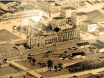 This is an enlarged portion of the lithograph. It shows the proposed Hotel and station. These were never built. Instead Birmingham Union Station was built at the same location. Lithograph from the Birmingham History Center. |